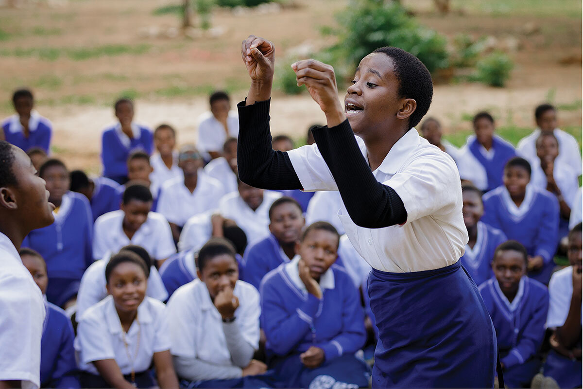 When we arrive at Ludzi Secondary School, the head teacher escorts us to our seats to watch the performance that Lessenia and the girls have prepared during their mentoring sessions.
