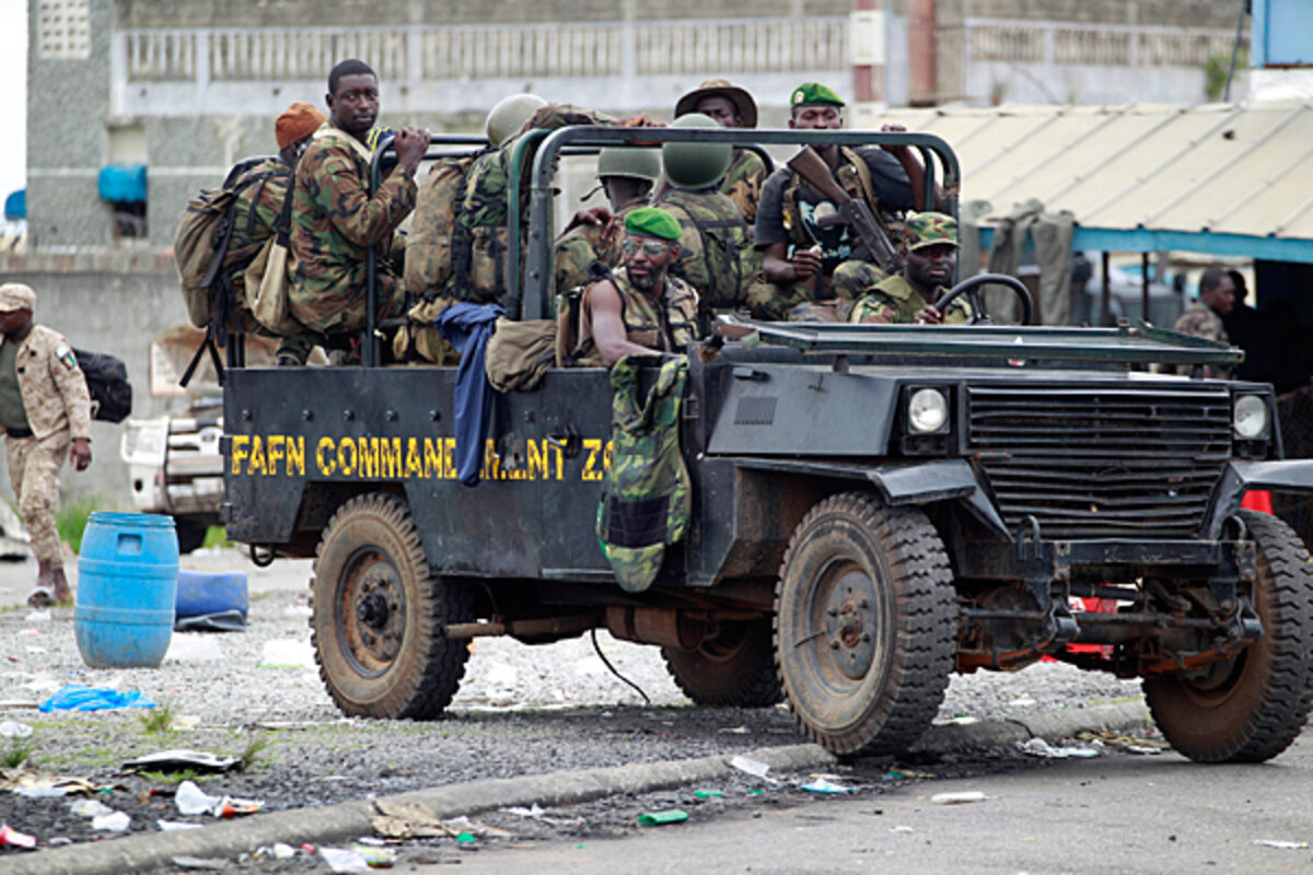 Incumbent President Laurent Gbagbo's government is negotiating a surrender, according to his spokesman. His three top generals have all turned themselves in to the United Nations after UN helicopters attacked their arms depot and several other positions. And Mr. Gbagbo himself is 鈥 as of this writing 鈥 sitting in a bunker below the presidential residence, which has been taken by opposing troops.