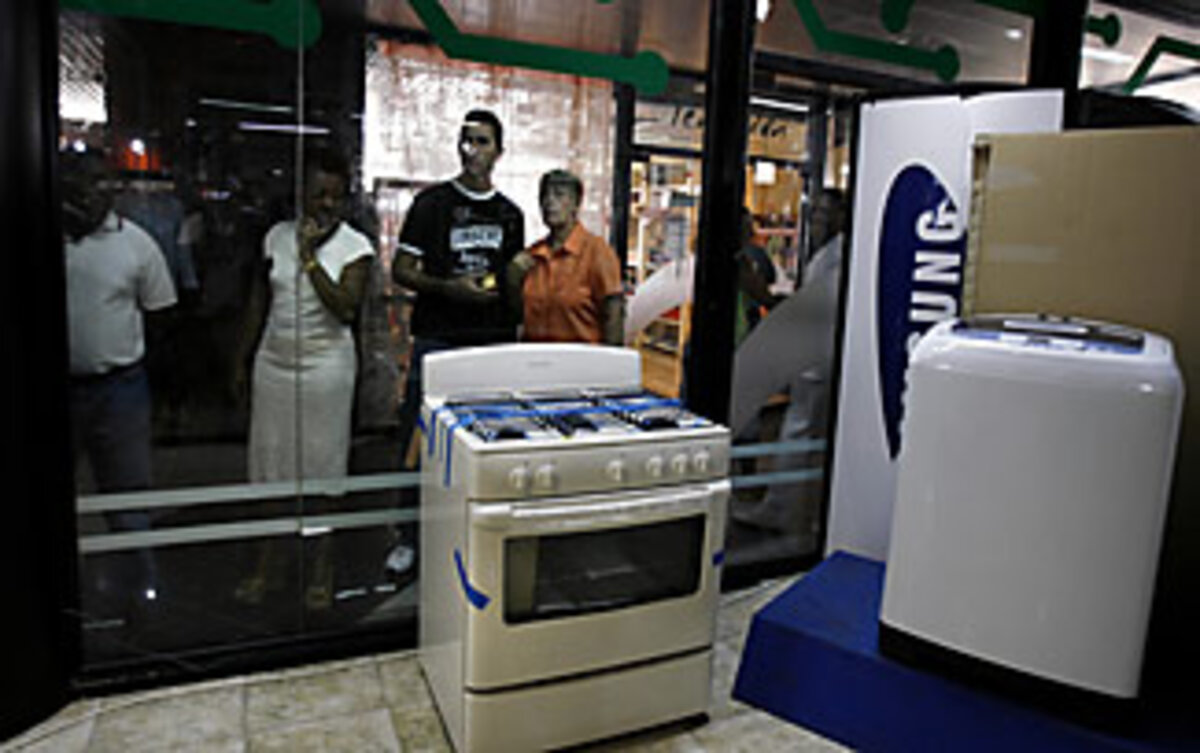 At the electronics shop, one woman burst into laughter when asked whether she was there to purchase a DVD player. "I'm just here to look," she says, eyeing the $130 price tag.