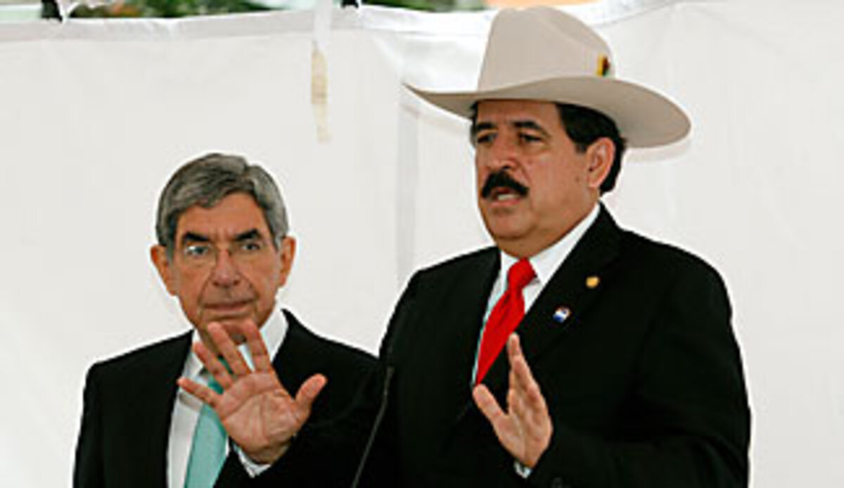 Zelaya, who was arrested by his military and exiled to Costa Rica, has been backed by the United Nations, the Organization of American States, and leaders across the globe, and demands no less than full reinstatement. Mr. Micheletti, meantime, says that Zelaya has broken the law and would be arrested immediately upon return.