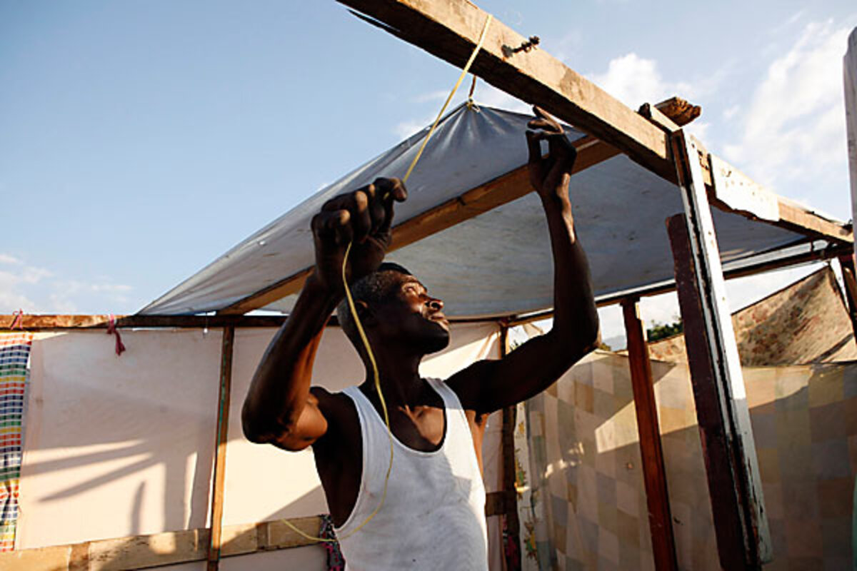 Ten days after Haiti鈥檚 devastating earthquake, hundreds of thousands of Haitians in the capital of 笔辞谤迟鈥揳耻-笔谤颈苍肠别 are living in open-air camps 鈥 with no prospects for moving into shelter and out from under the tropical country鈥檚 hot sun any time soon.