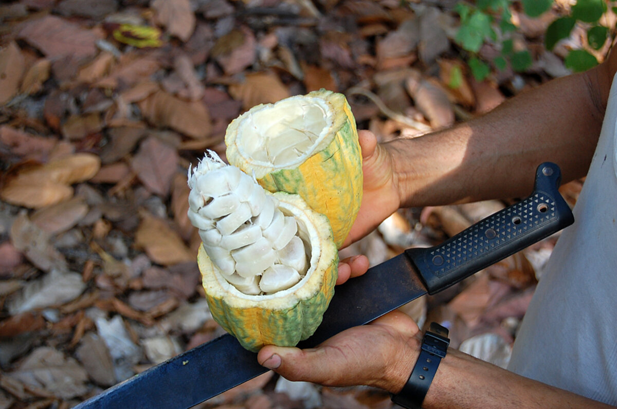 The farmer takes care not to damage a single bean. That would hurt his chances of getting the best price for the specialty organic cocoa his cooperative sells for export to high-end chocolate retailers in Europe and the United States.