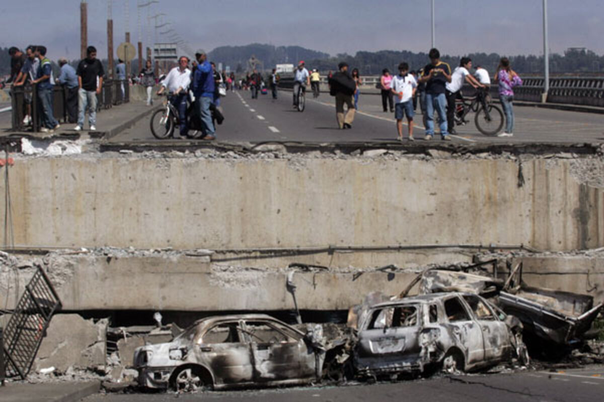 In Chile, the hardest hit city was Concepcion 鈥 the US Geological Survey said the epicenter was 70 miles northeast of the city 鈥 where local news reported a 15-story building collapsed, as well as bridges, and that highways were cracked. The airport in Santiago will be shut for at least 24 hours.