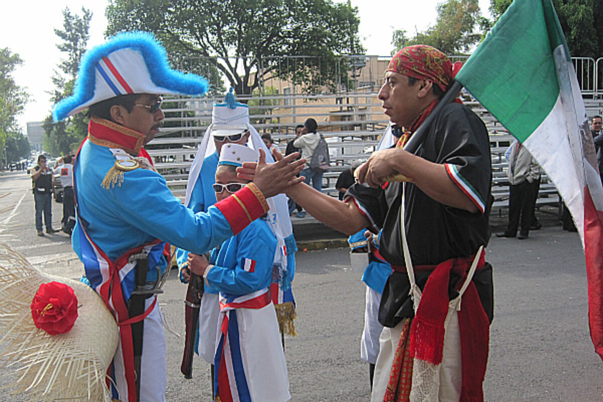On a day in which the point is Mexican pride, it might seem a challenge to coax Mexicans into playing their French rivals. But Luis Antonio Martinez, who is acting as Count Dubois de Saligny today, prefers to dress up French.