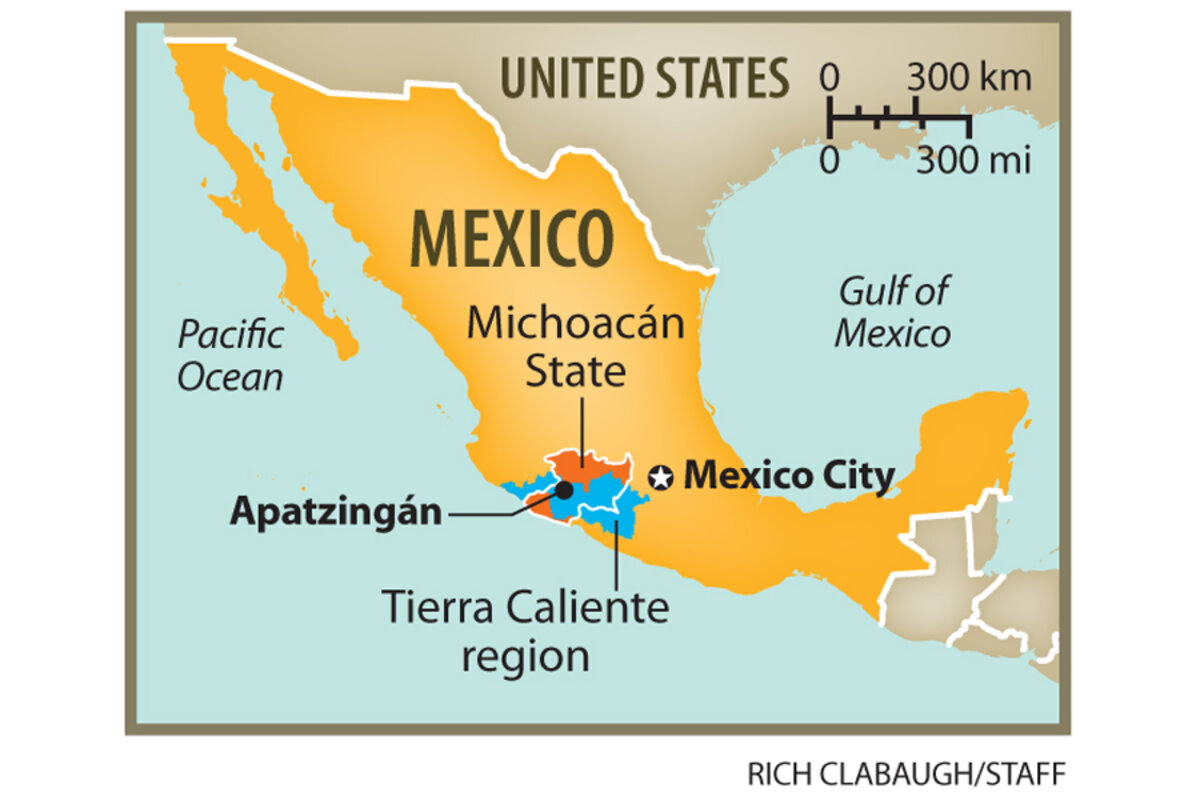 Three years ago, Mr. Gomez fled this town, driven out by increasing threats from the powerful Knights Templar drug cartel, which controls not just villages like La Ruana, but the region's administrative and commercial hub, Apatzing谩n, with a population of nearly 125,000.
