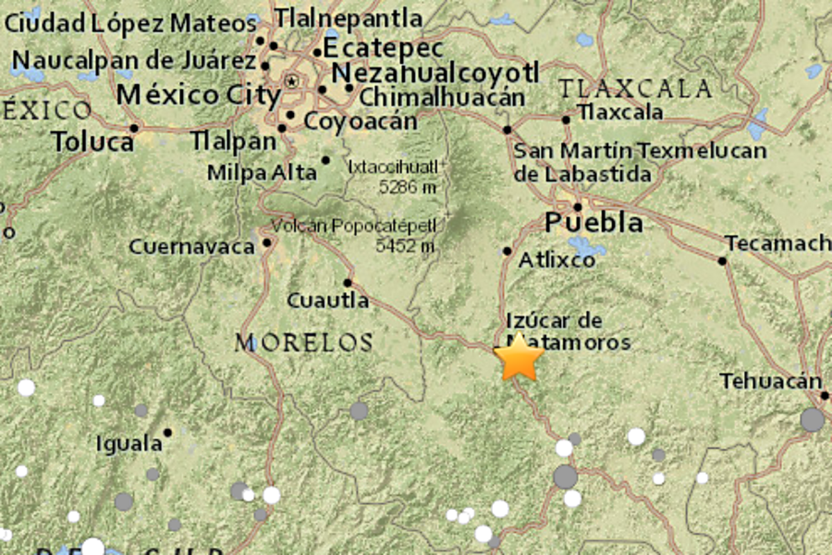 The U.S. Geological Survey calculated its magnitude at 7.1 and said it was centered near the Puebla state town of Raboso, about 76 miles (123 kilometers) southeast of Mexico City.