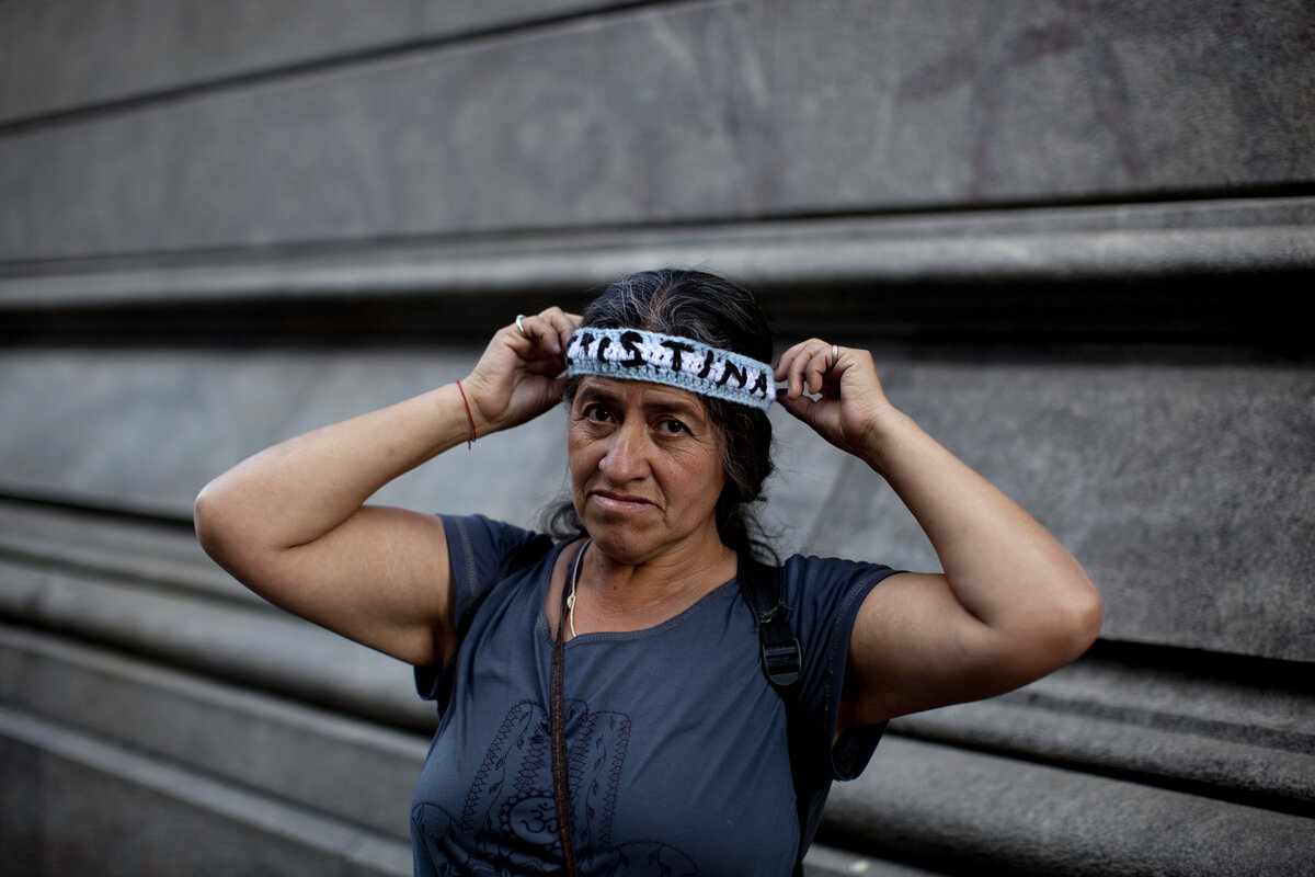 "Many women voted for the government of Mauricio Macri and now they regret it," Teresa Rollano said while walking arm-in-arm with a friend who carried that sign. "The people want Cristina because she represents the working class. She has given us all of our rights."