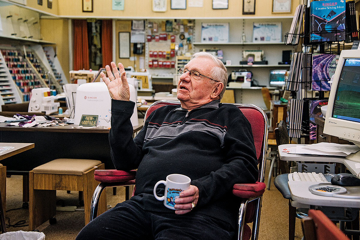 Mike Gray sits in his Singer sewing shop in early January in downtown Oshawa, which was rocked by economic news in late November when General Motors announced a five-plant closure across North America, including its last assembly line here. He says he believes Canada won鈥檛 be torn apart and politics won鈥檛 turn mean-spirited as it has south of the border. 鈥淚 think it鈥檚 just the way we were brought up,鈥 he says. 鈥淧eople are probably a little more gentle. ... I think that we鈥檙e used to not rattling people up; it鈥檚 just not our nature.鈥