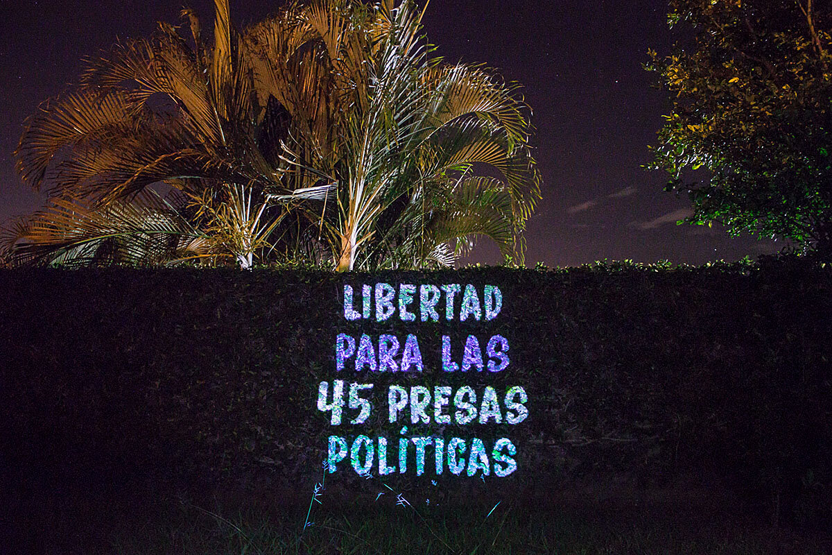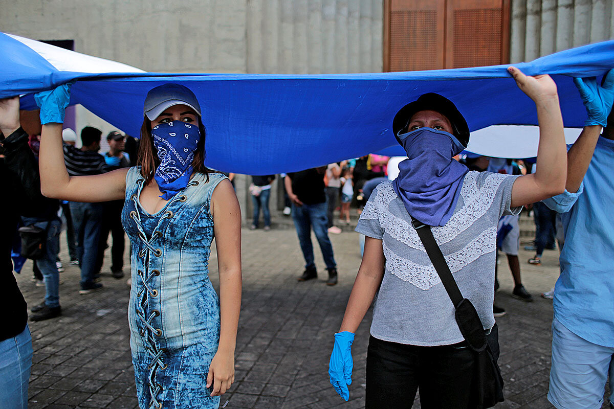 A small group waving blue and white Nicaraguan flags and chanting 鈥淔reedom for political prisoners!鈥 was quickly surrounded by truckloads of police in riot gear. But the demonstrators鈥 presence underscores a dedication to voicing opposition to the government, despite more than a year of sometimes deadly crackdowns and intimidation 鈥 in which protesters are getting more creative.
