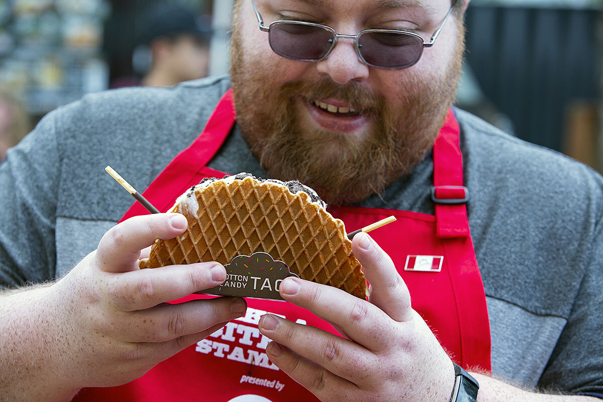But he says the Food Network and the burgeoning foodie movement inspired him beyond the usual fried fare, and the Stampede joined the race toward over-the-top foods. They started with simple fusions that are still on display today, like bacon pancakes or funnel cake pizza.