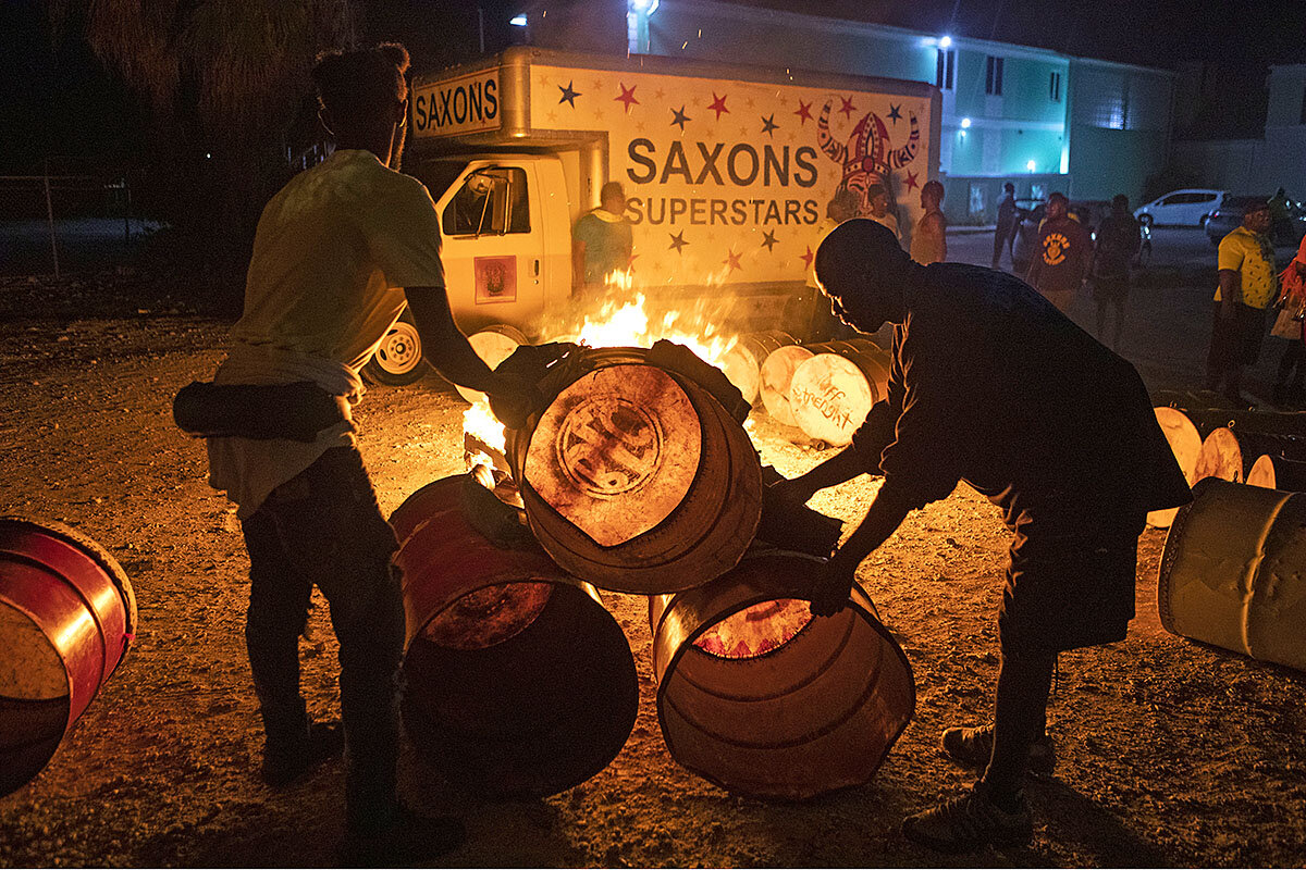 During Junkanoo season, which starts in the fall, rehearsals take place throughout the Bahamian capital. On a recent Sunday in a parking lot at Arawak Cay, where Nassau鈥檚 鈥渇ish fry鈥 is located, smoke from a bonfire billows into the humid air. Around it lie 23 goat-skinned drums, heated to make them taut. This is the Saxons Superstars鈥 usual rehearsal spot.