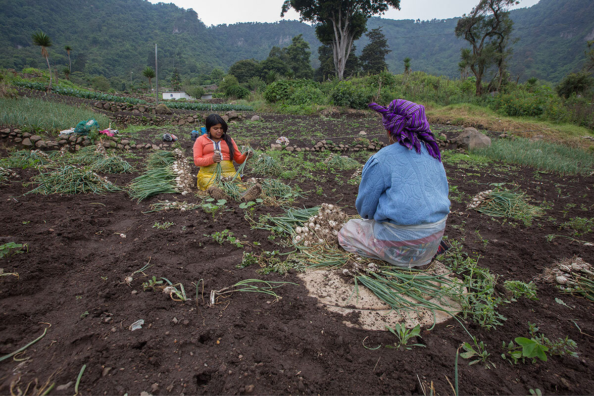 Mart铆n Zapil crouches down and examines the lush green leaves of a lettuce plant growing on one of his small plots of land here in Guatemala鈥檚 western highlands. Access to this land 鈥 parcels that he rents from neighbors and family 鈥 has given Mr. Zapil the opportunity to build an organic agricultural business, supplying restaurants and local markets with his fresh vegetables.