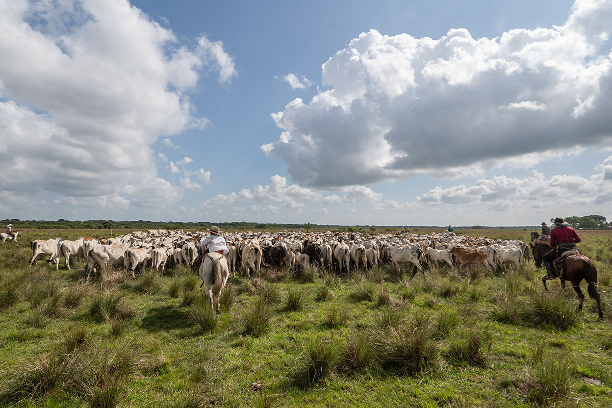 Twice a year in May-June and November-December, ranchers hire llaneros, local cowboys who employ traditional cattle-driving practices. Livestock is the economic core of this region. But large industries producing crude oil, rice, and oil palm have displaced many ranches, disrupting the heritage of local llaneros, or people of the plains.