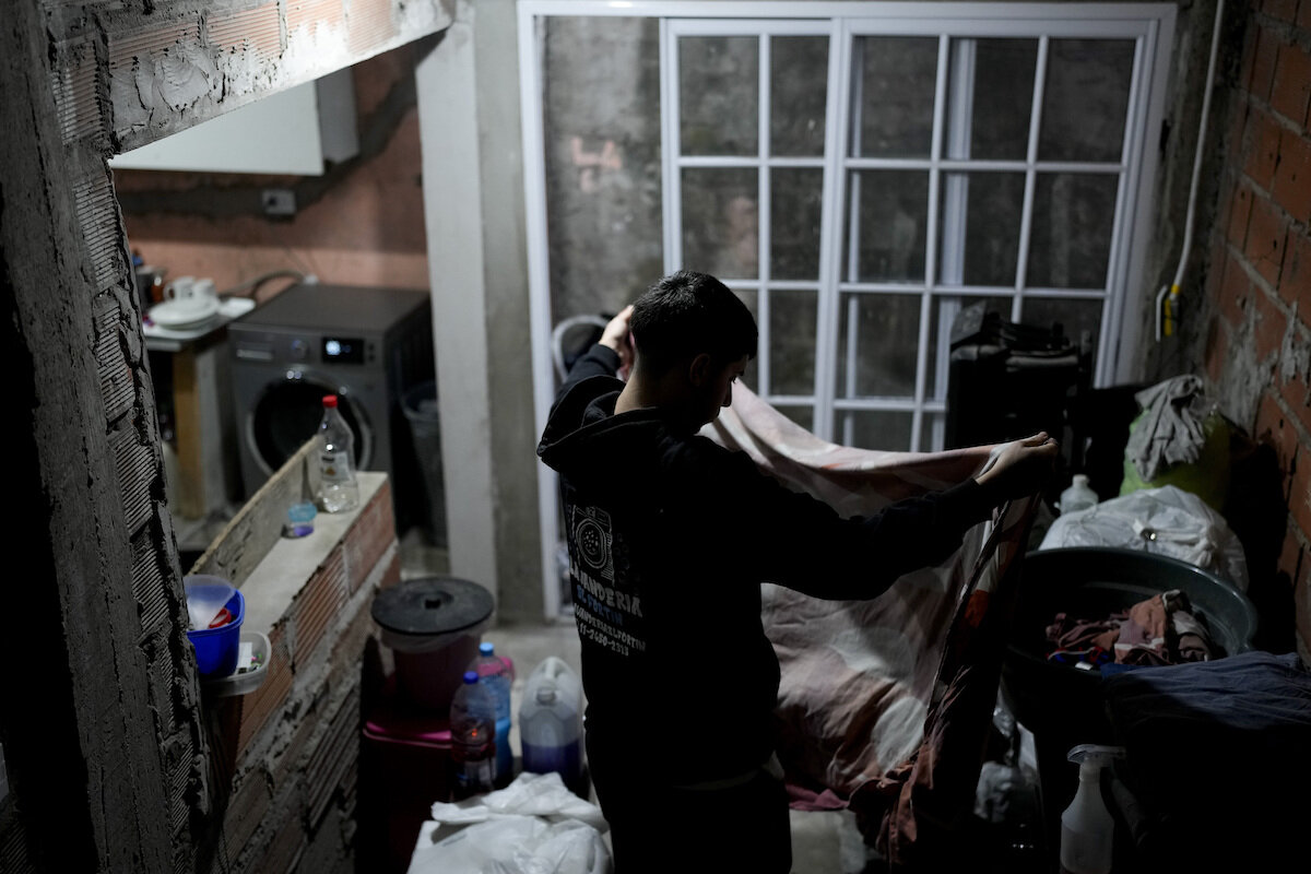 From an attic spangled with laundry lines, Ms. L贸pez and her 21-year-old son Patricio run the only laundromat in their urban slum. By dawn, their floor is shaking with the rumble of washing machines as they sort coats and quilts for some dozen neighbors a day.