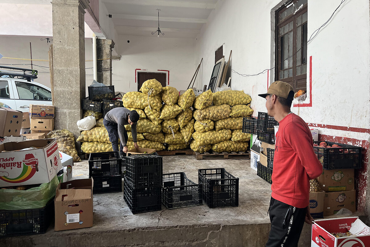 The unit pulls up to the back door of one of the oldest churches in the historic center of Mexico City. Nearby, hundreds of mostly African, Haitian, and South American migrants live in tent camps.