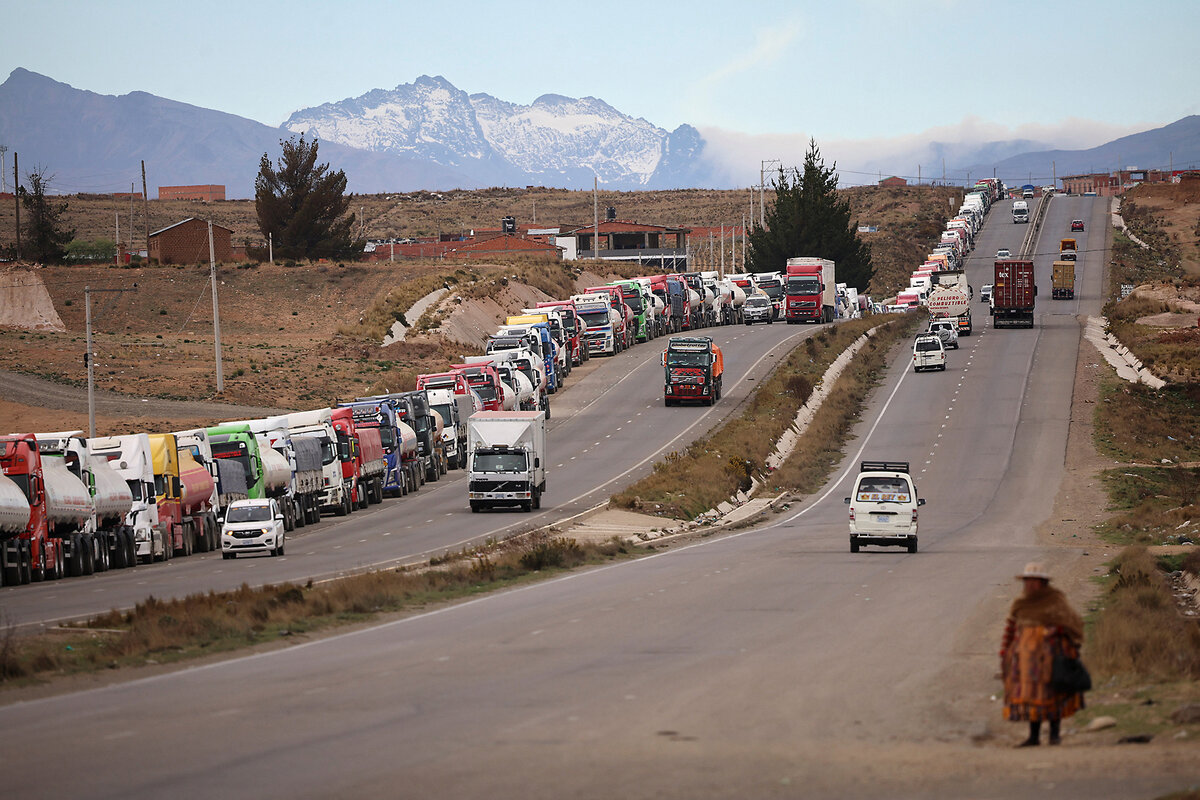 On a recent morning, more than 100 trucks, buses, and vans lined up along a major thoroughfare in El Alto, the country鈥檚 second-largest city that sits on a plateau overlooking the capital, waiting for diesel. It鈥檚 an increasingly common sight nationwide.