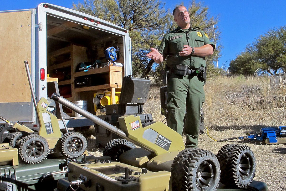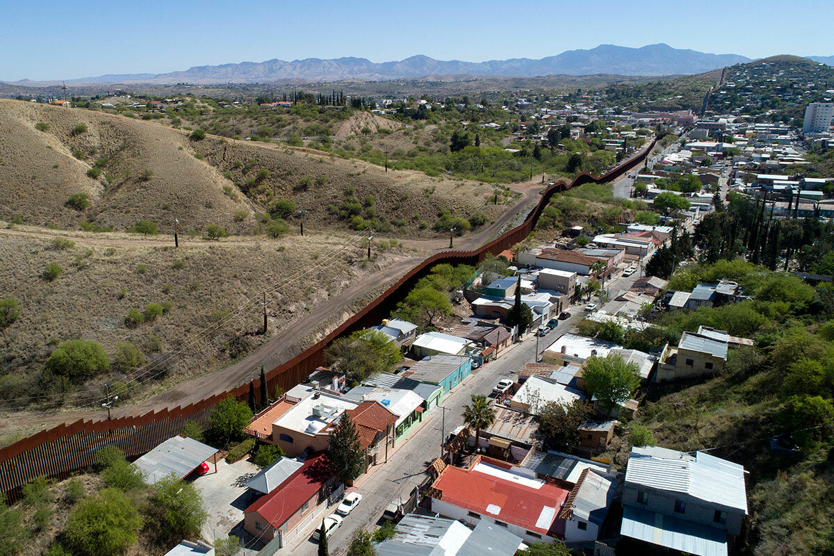 In the US, green-and-white Border Patrol SUVs constantly prowl the road along the border fence, which cuts through downtown Nogales near the official border crossing, where an abundance of people and goods flow legally every day. Floodlights, drones, ground sensors, and surveillance cameras help US authorities track illegal activity 鈥 all part of a surge in manpower and material that mostly came in after 9/11.聽