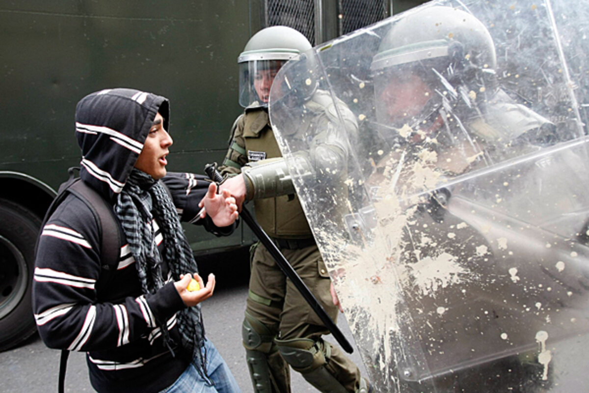 Valparaiso should be a crash-point for such a conflict. It's the headquarters of the Chilean navy, and also home to one of the country's biggest concentrations of radical university students. Posters around the city promote violence against the government and insult the police.