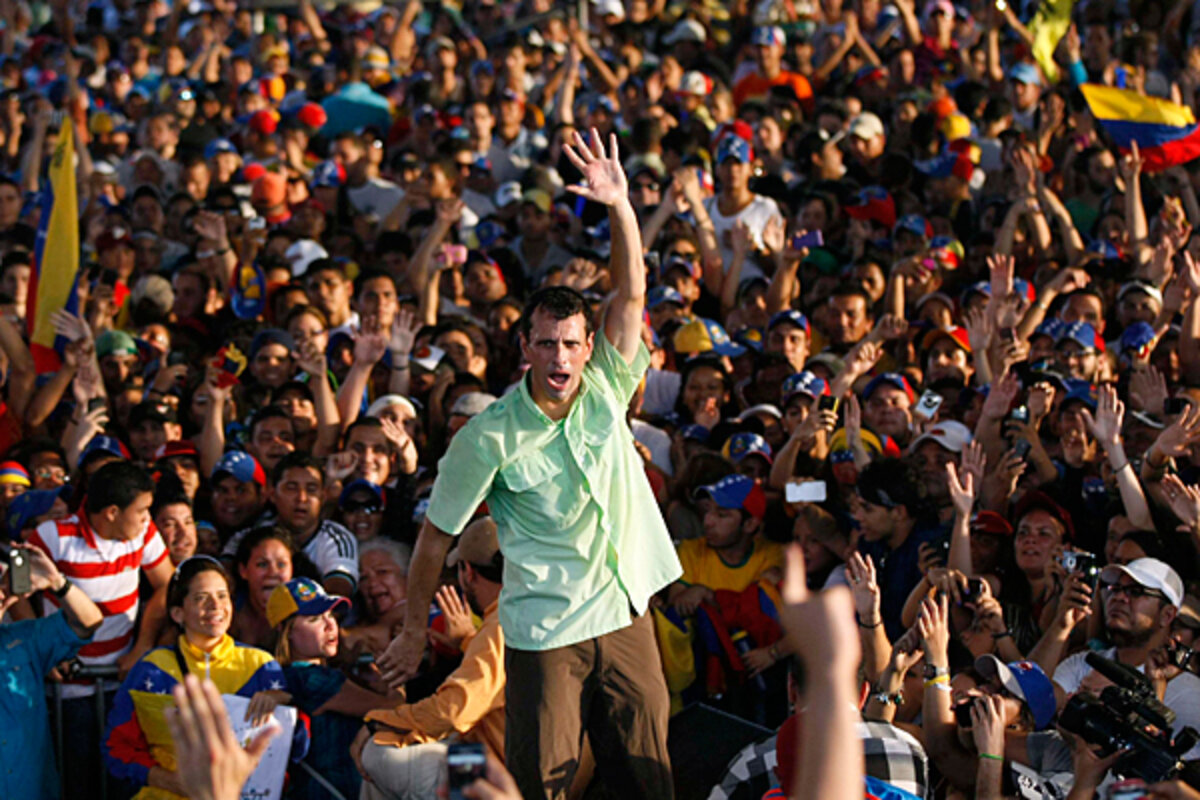 [Opposition candidate Henrique] Capriles began a nation-wide stump tour, hitting two states per day, holding mass outdoor rallies that follow, more or less, the same format. His Asambleas Populares, as they鈥檙e called, kick off with four or five speakers who articulate their grievances 鈥 campaign sources confirm the testimonials always center on five key issues: education, people with disabilities, crime, the economy, and justice. These professional gripers then hand off to Mr. Capriles who gives a rousing speech drawing on their themes before circling around to his broader messages (Truth over lies, Nicol谩s Maduro鈥檚 government is inept, Venezuelans don鈥檛 deserve all these problems.)