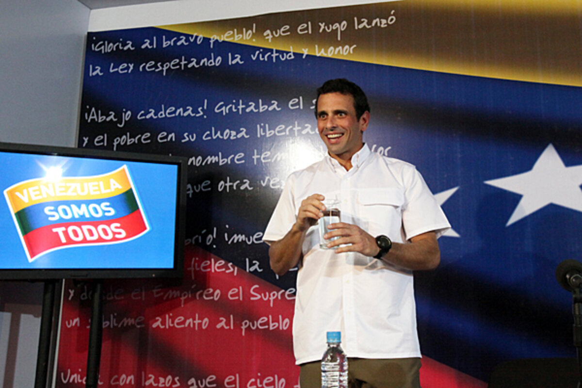 Wednesday, [opposition leader] Henrique Capriles went on television to demand the [National Election Council] CNE offer his data as part of the [election] audit. The government of Nicol谩s Maduro quickly insisted that all television stations go to cadena, [where all channels must broadcast the same message from the government] in order to broadcast a prerecorded infomercial accusing Mr. Capriles of instigating violence. This had the added effect of blocking the Capriles press conference from the few stations that were broadcasting it.