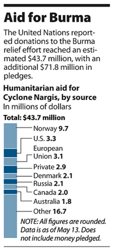 "I think a lot of aid agencies will be looking to supplement their relief efforts by positioning Asian staff in Myanmar. It's easier for Asian staff to get visas for Myanmar," he continues. Sending in Asian nationals reflects the changing reality of international relief groups, Mr. East says. "It's not really about bringing in white faces from Western countries. It's about sourcing expertise globally."
