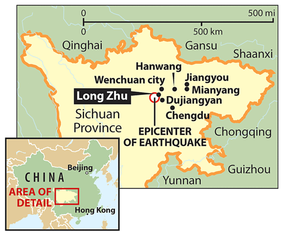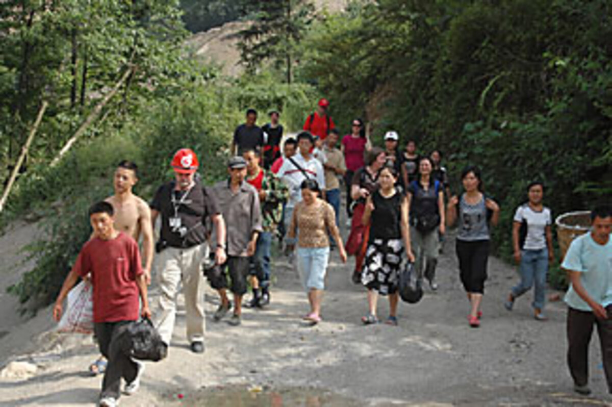 His destination last Tuesday was Long Zhu, a scattering of houses across forested hillsides now scarred by rock slides, that he had visited 10 days earlier as the head of the first civilian relief team to reach the 800 inhabitants.