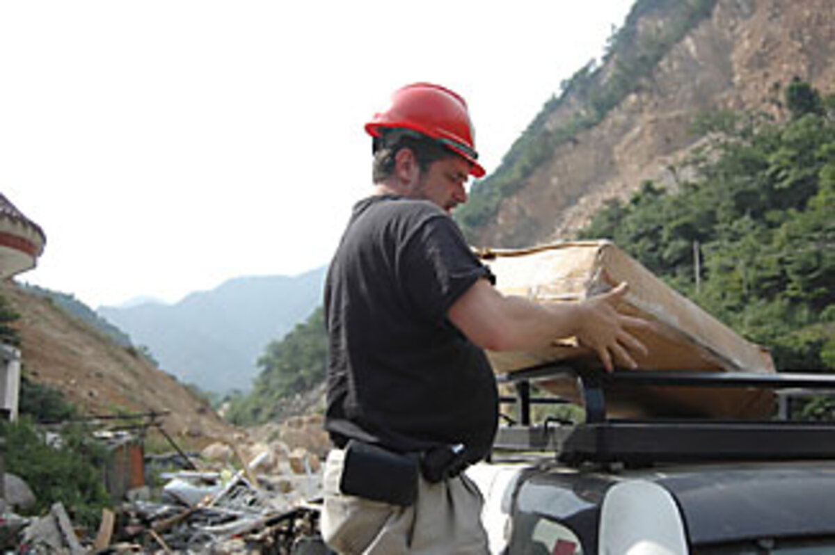 "If not for the earthquake," he says, "I would probably be somewhere else learning Chinese, which is what I ought to be doing. But this gives me a nice, noble reason not to study."