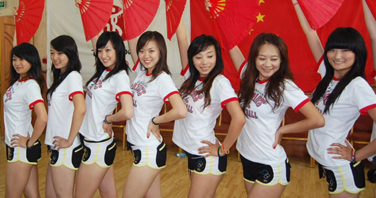 Another squad twirls nunchucks before switching to pompoms mid-song. "Everyone knows cheerleading is a Western activity, but we hope we can find a Chinese way to do it [and] show the world," says He He, who sports long, dyed-red hair and a sparkly belly-button ring.