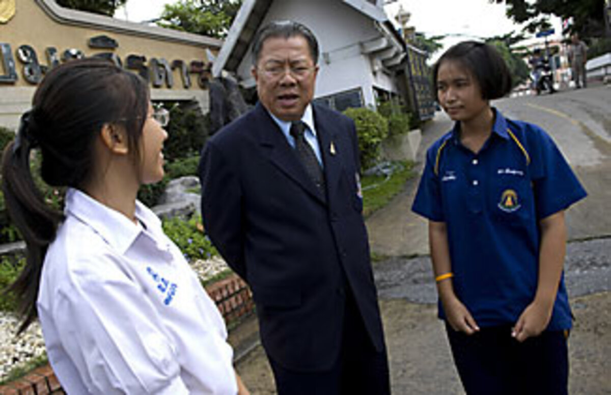 One of seven schools chosen for the Thai project, Khemaprirattaram is a century-old secondary school in a Bangkok suburb that blends into the rice-growing hinterland. Its student body of 3,070 is a mix of local families and transfers from other districts, and has its fair share of troubled students, says principal Japruek Srilert.