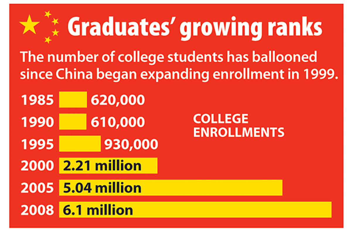 The oversupply of students first ballooned in 1999, when China erected a flurry of colleges in an effort to mint more of the scientists and managers it needed for a 21st-century economy. It also sought to absorb a burst of teenagers born in a post-Cultural Revolution baby boom after 1976.