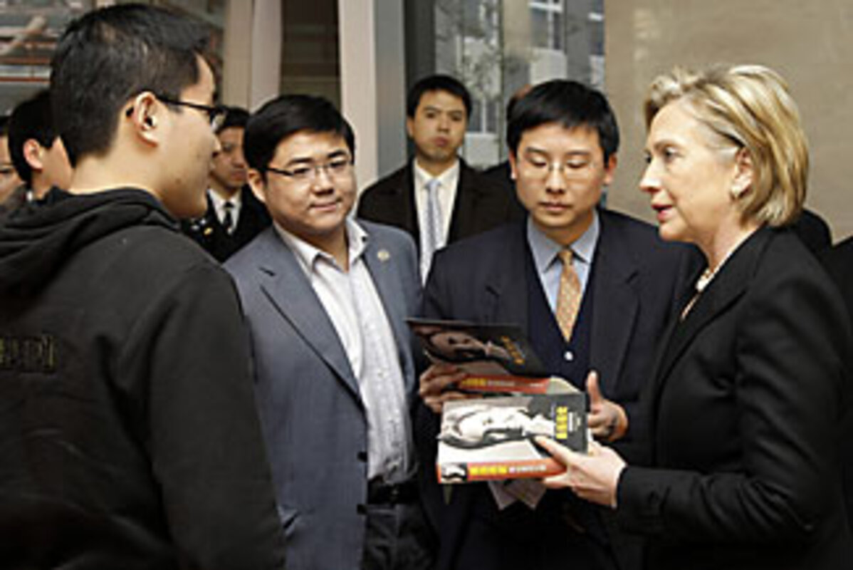 On a visit designed to "lay the basis for future relations," says Yan, it was not surprising that Clinton chose to play down human rights violations in China 鈥 a subject on which she spoke so vehemently here 14 years ago that the authorities pulled the plug on live TV coverage of her speech.