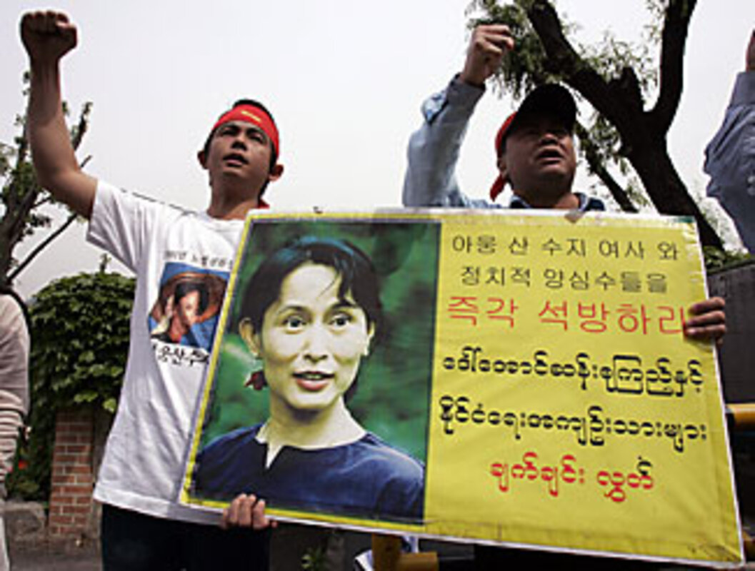 "They've [the regime] at least boosted her image," said Aung Zaw, who fled Burma to found the Thailand-based Irawaddy magazine on Burma affairs. "Their fear of her proves she's relevant. I can imagine her in her cell, smiling and thinking, 'Thanks for the PR.' "