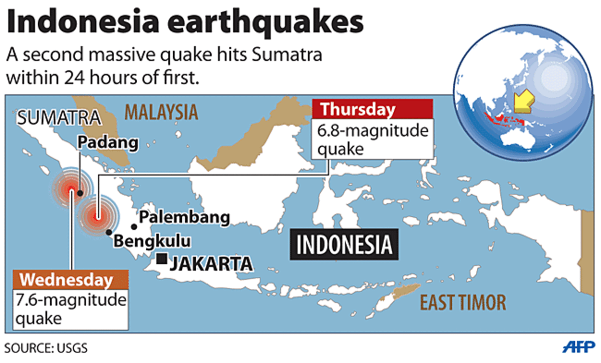 Rescue workers scrambled Thursday to reach survivors of a 7.6-magnitude earthquake that struck off the Indonesian island of Sumatra as the official death toll topped 500. A second tremor early Thursday triggered further panic in Padang, the stricken city near the epicenter, though without causing further damage.