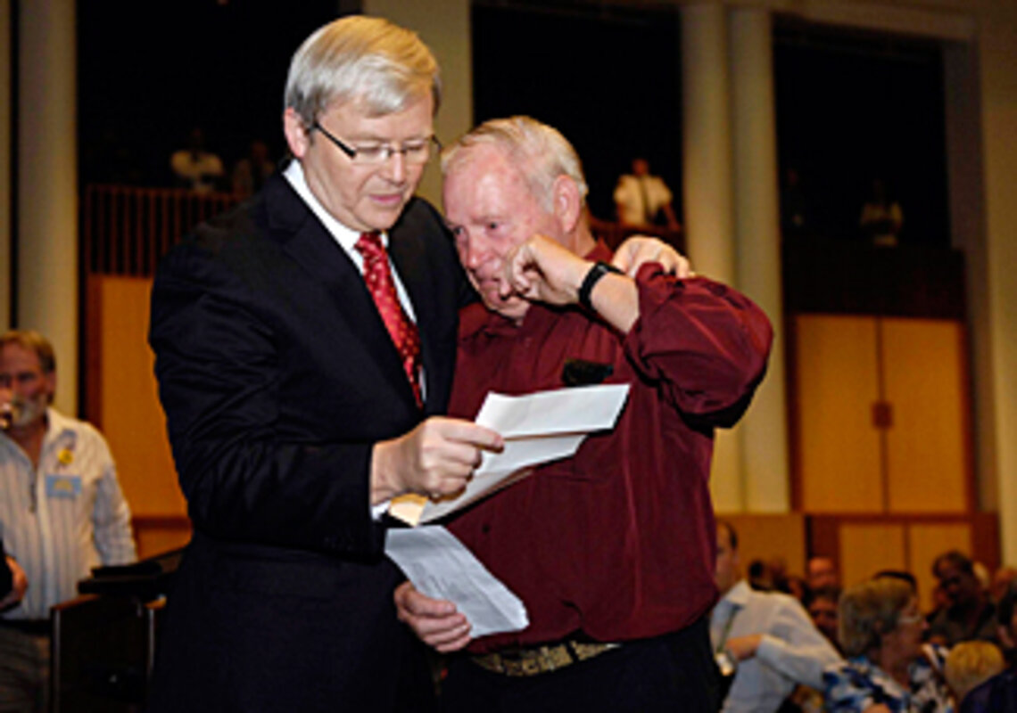 Inside Parliament House in Canberra, the nation's capital, about 900 of the former child migrants gathered in the audience to hear Mr. Rudd deliver words of contrition. The prime minister told them: "We come together today to offer our nation's apology, to say to you, the forgotten Australians, and those who were sent to our shores as children without their consent, that we are sorry. Sorry that as children you were taken from your families and placed in institutions where so often you were abused. Sorry for the physical suffering, the emotional starvation, and the cold absence of love, of tenderness, of care. Sorry for the tragedy, the absolute tragedy, of childhoods lost."