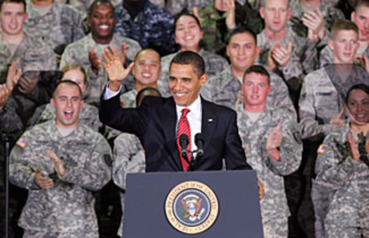 On the final day of a tour that took him to Japan, Singapore, China, and South Korea, Obama could be sure in these friendly surroundings of real agreement on America's role as a military superpower on fronts extending from northeast Asia to the Middle East. First with President Lee, and then at this major air base, the headquarters of the 7th US Air Force 30 miles south of Seoul, he could speak in the unabashed language of a leader of battle-ready troops.