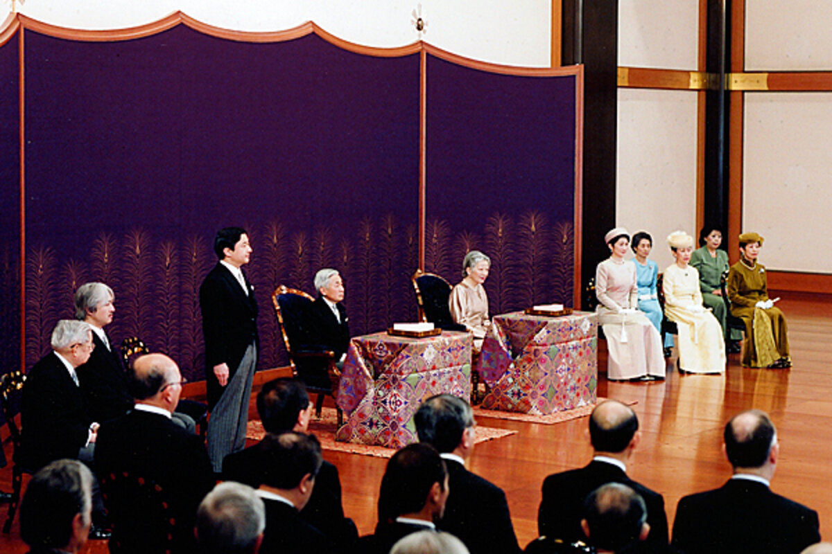 Tuxedo-clad singers chanted the poems in an elaborate, nationally televised imperial ceremony that also included the reading of poems submitted by ordinary citizens.