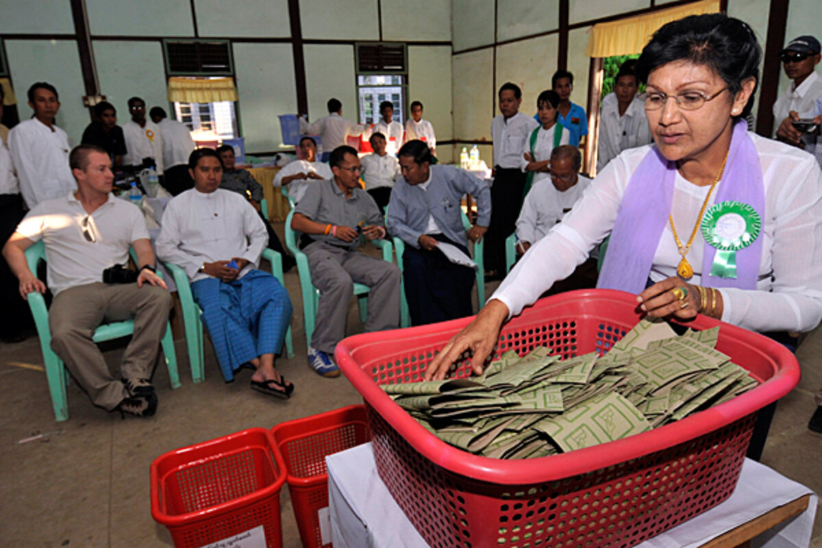 鈥淲e clearly saw how the ballots were manipulated. We have evidence,鈥 Yuza Maw Htoon, an independent candidate in Rangoon who lost to the USDP, told the Monitor in a telephone interview. She says pro-democracy groups were still discussing how to press for redress and criticized the election commission as biased.