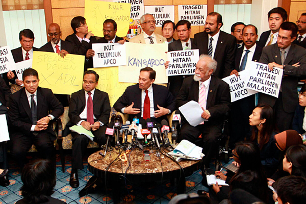 The parliamentary session was dogged by controversy as opposition lawmakers held up placards that read "Rubber Stamp Parliament" and "Kangaroo Court." The opposition coalition then staged a walkout before the votes were cast. Mr. Chua later said Anwar wasn鈥檛 given a chance to clarify his statements and said the speaker of the parliament appeared to ignore the protocol for suspensions.
