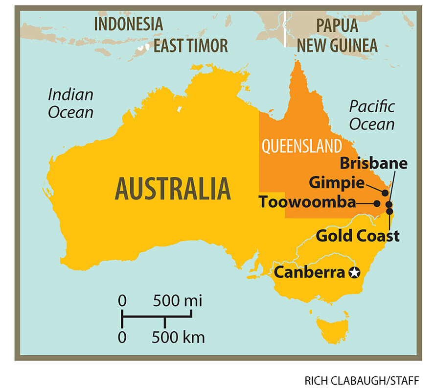 What's the primary cause of the Australia flooding, which now covers an area the size of France and Germany combined and has caused an estimated $6 billion in economic damage? The La Ni帽a ocean-atmosphere phenomenon in the Pacific.