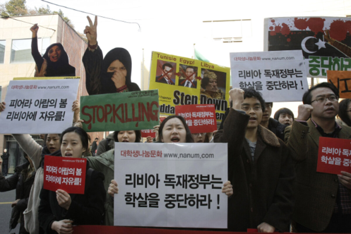 鈥淭here is risk,鈥 says Lee when asked about the possibility of violence against foreign interests erupting in other Arab countries caught up in a democracy movement that also bears parallels to mass protests here that ended military rule and led to elections in South Korea in 1987. 鈥淭he fear is very high.鈥