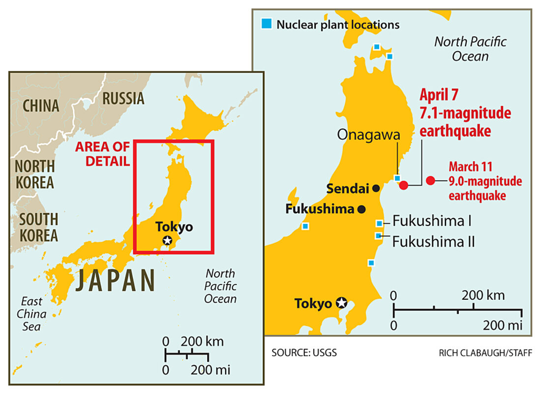 The center of the earthquake was 40 kilometers below the seabed, about 60 miles east of the city of Sendai and about 90 miles from Fukushima, according to Japan's Meteorological Agency.