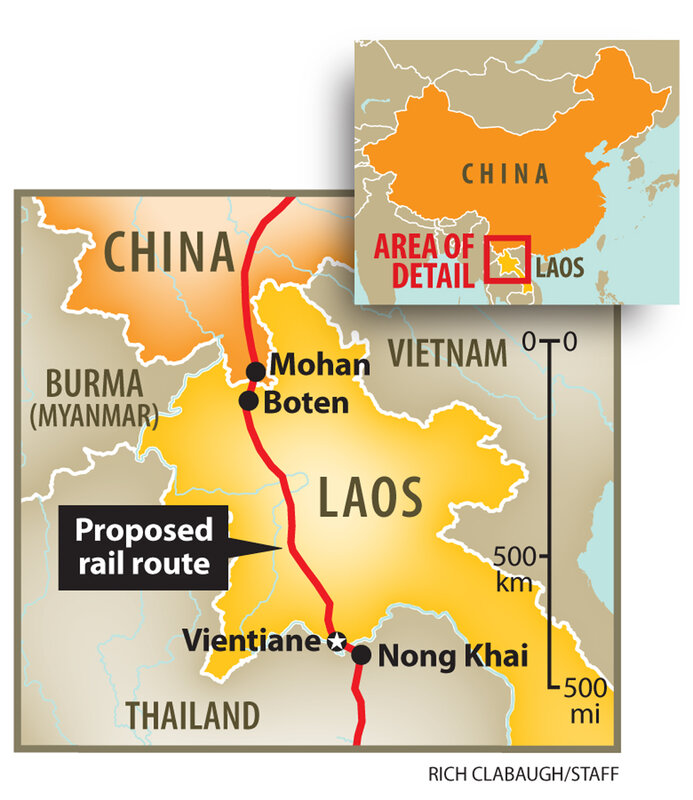 Then the Laotian government officials showed up and explained that much of the village, relocated in 2005 to make way for a Chinese casino, would have to move again. In March, a team of Chinese engineers began surveying the lush valley and hillsides, which lie on the railroad's planned 261-mile route south to the capital, Vientiane, from the nearby border.