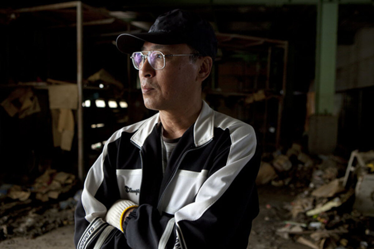 Mr. Kanno's home burned down after the earthquake, but his small factory next door survived, even if all the machinery was rendered unusable by the seawater that rose above head height.
