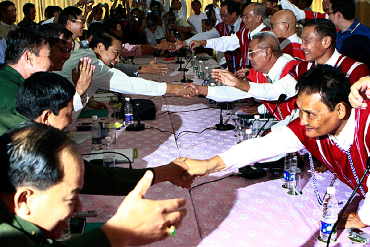 Earlier today, government representative Aung Min told journalists that 鈥渁 cease-fire agreement has been signed,鈥 and photographs emerged in wire reports of beaming delegates on both sides shaking hands across a table, the Burmese in green uniform and the Karen in traditional dress.