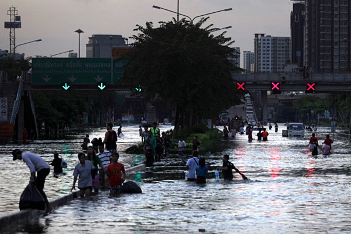 The floods were actually caused in part by reaction to a drought the previous year. To hedge against water shortage, Thailand's dams were allowed to stay almost full throughout 2011. But after months of heavy rainfall, the eventual spillover met an already sodden floodplain.