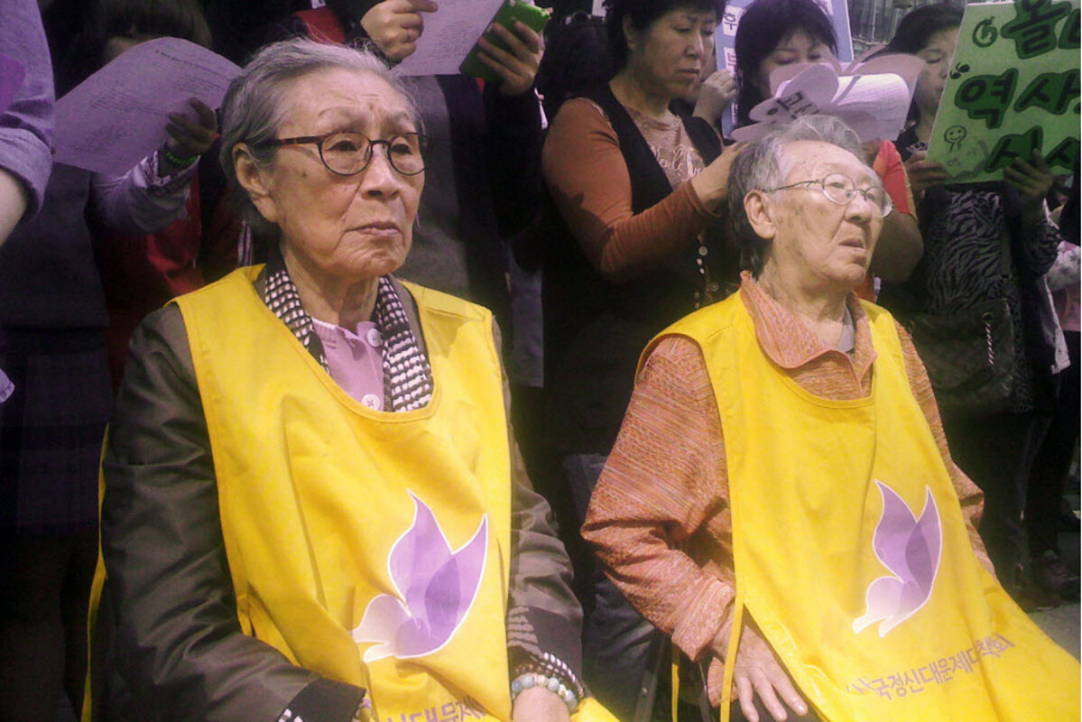 鈥淛apan鈥檚 apology should be sincere and true and come from the bottom of their hearts,鈥 says Yoon Chang-mee, an elegantly dressed woman attending one of the weekly demonstrations outside the Japanese embassy.