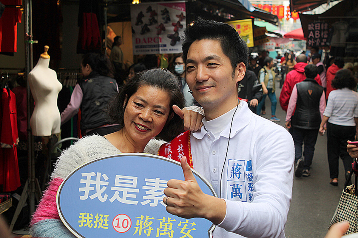 One exception may be Chiang Wan-an. A US-trained lawyer in his mid-30s who returned to Taiwan from California in 2013, Mr. Chiang's warmth and poise on the campaign trail may win him a legislative seat.