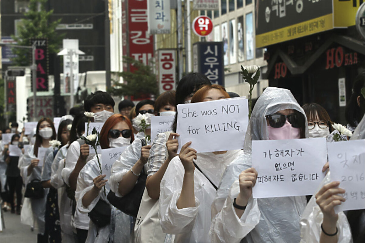Hundreds of South Koreans marched in one of Seoul's busiest leisure districts on Saturday to protest the stabbing death of a 23-year-old woman. Her death has struck a nerve in a country where, despite its reputation for being relatively safe, many women say they are increasingly afraid of threats, abuse and attacks by men.