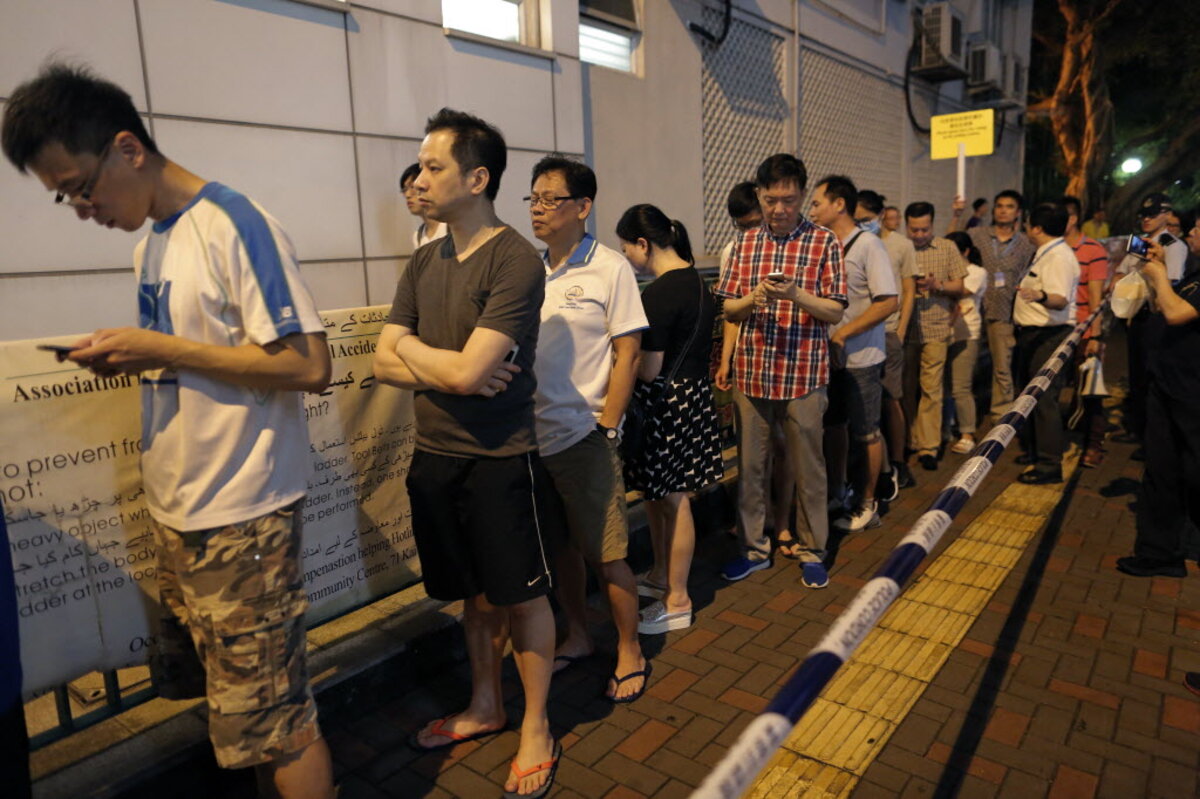 Earlier Sunday, a small group of protesters demanded Leung step down outside a polling station where he cast his vote.