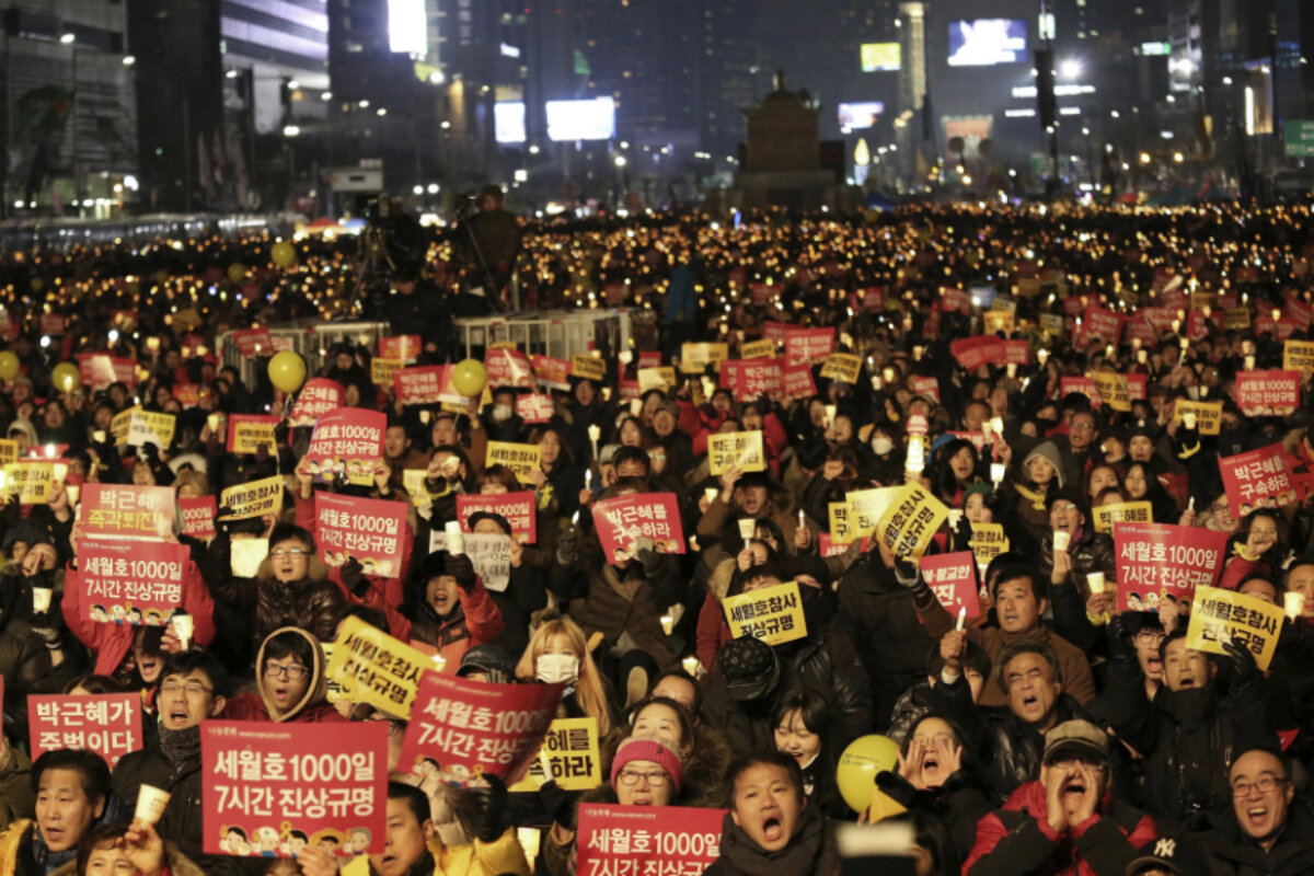 If Kim had reached an emotional tipping point, his country was on the brink of a political one. One of the largest civil movements in South Korea鈥檚 history was about to bring down a president engulfed in one of the country's biggest scandals ever.